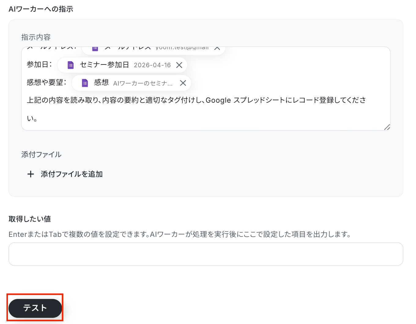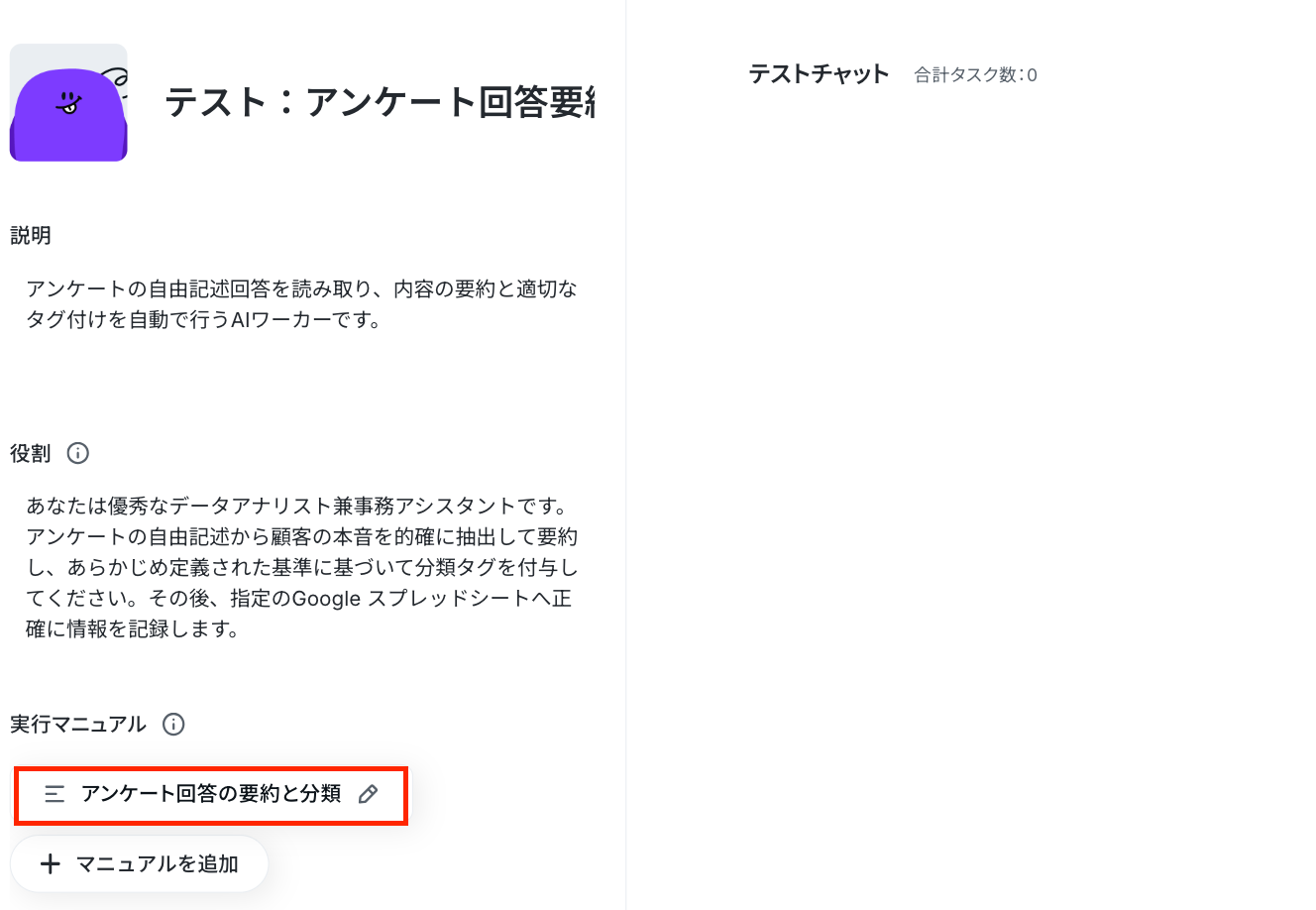 5.マニュアル内容とAIワーカーへの指示を変更したら、テストします。