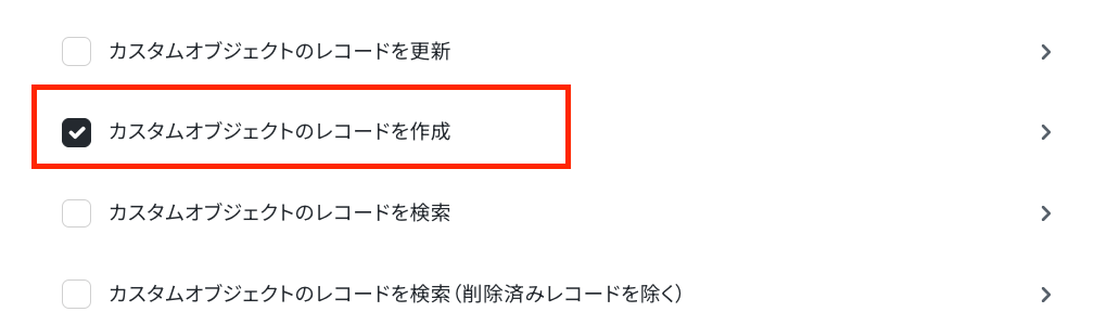 4.「カスタムオブジェクトのレコードを作成」にチェックを入れます。