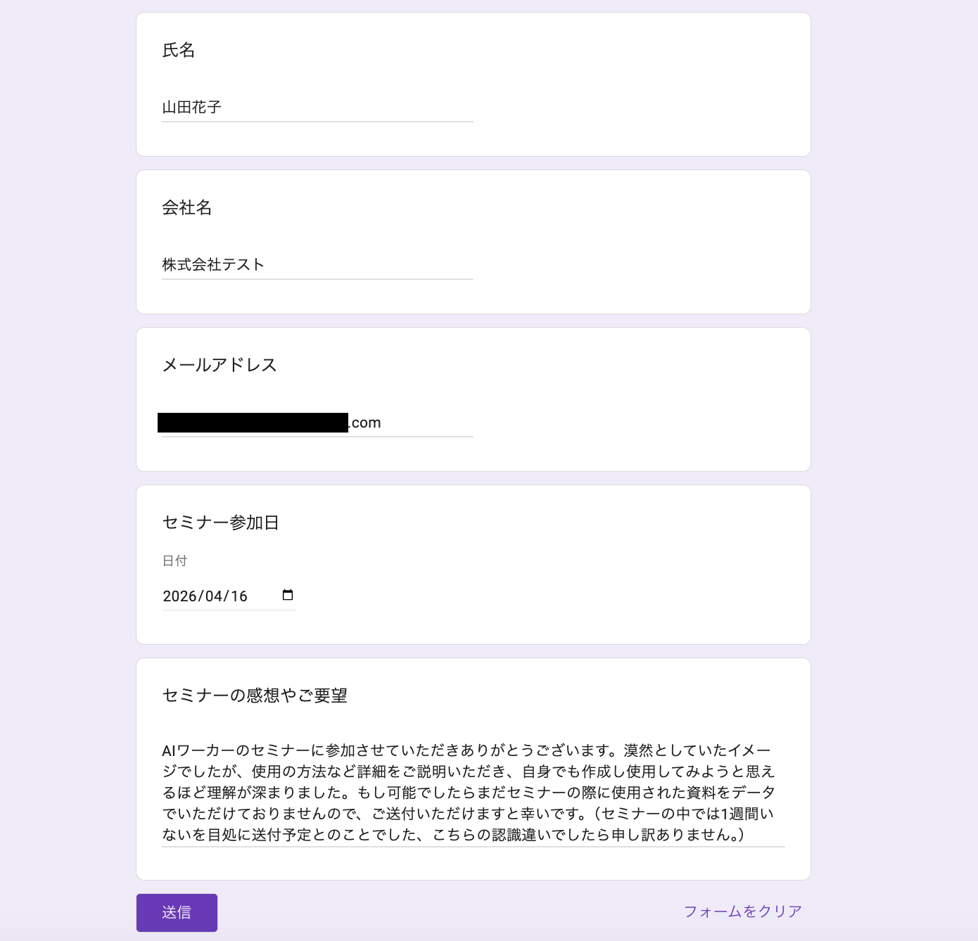 設定を終えたら、必ずフォームにテスト回答をしてくださいね。