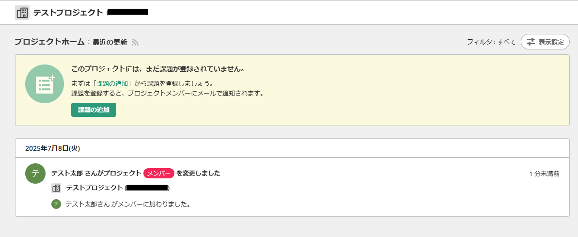 フローの作成を始める前に、あらかじめYoomと連携するBacklogに、新しいプロジェクトを追加しておきましょう!