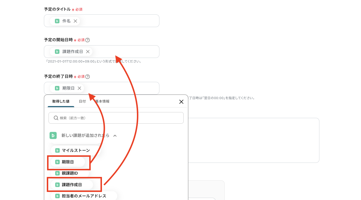 この自動化によって、カレンダーに登録した予定を自動的に同期でき、プロジェクトに関連する予定とタスクを管理しやすくなります。