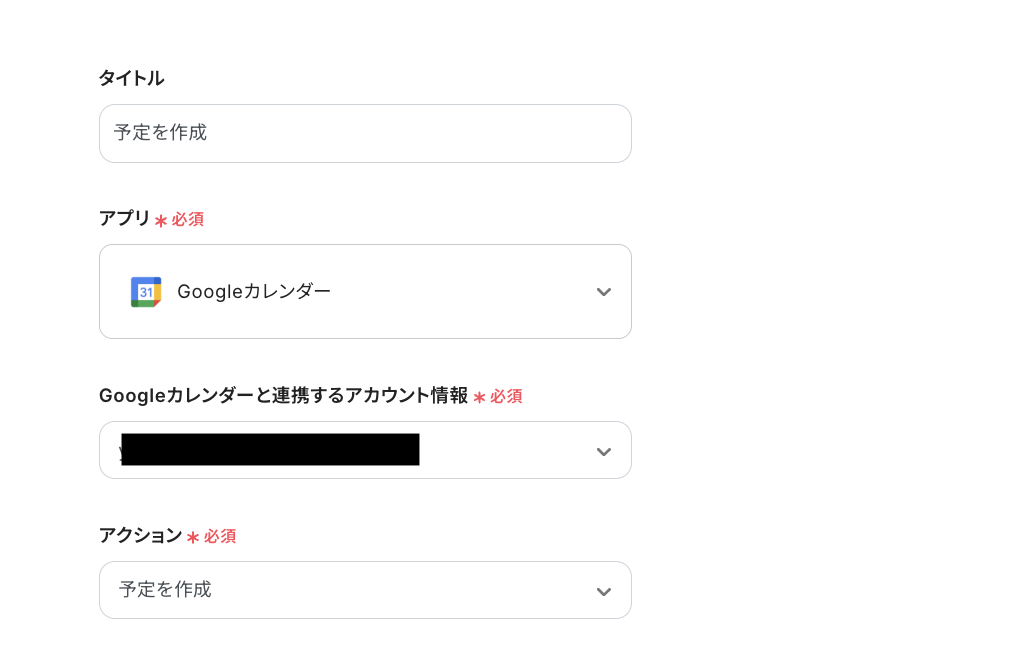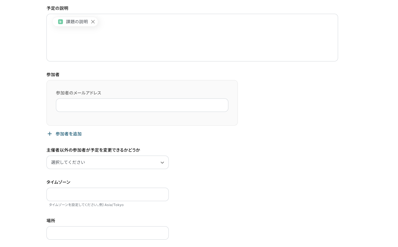 「予定のタイトル」や「予定の開始時間」を入力していきましょう。