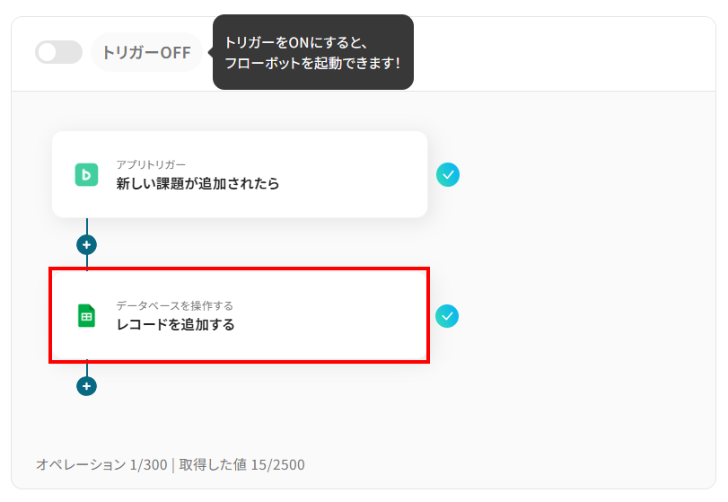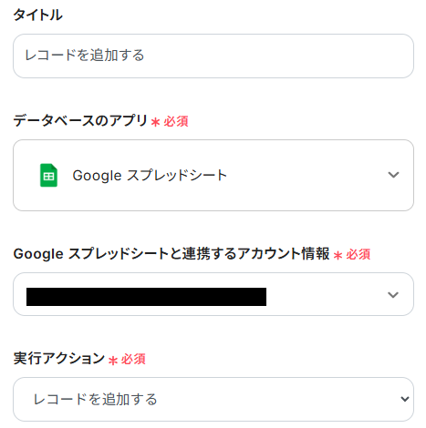 1.続いて、Google スプレッドシートにレコードを追加する設定を行います。まずは、下記赤枠をクリックしてください。