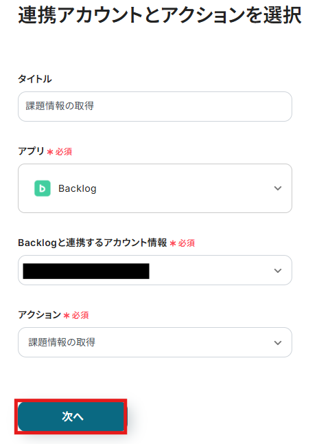 ステップ5:Backlogの課題情報を取得するアクションを設定