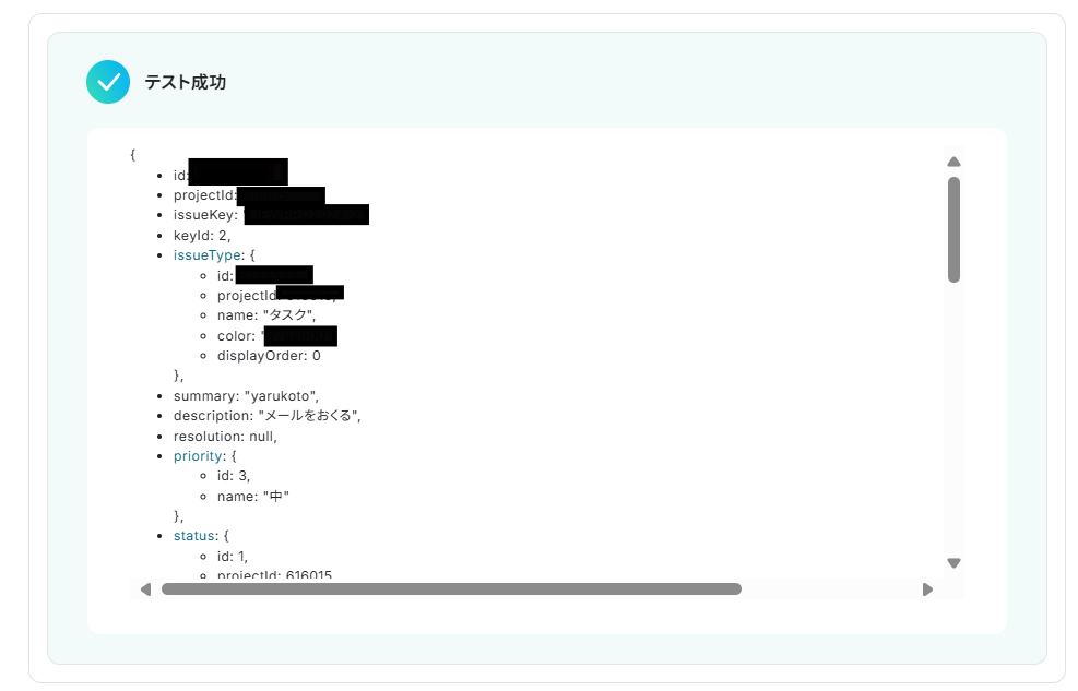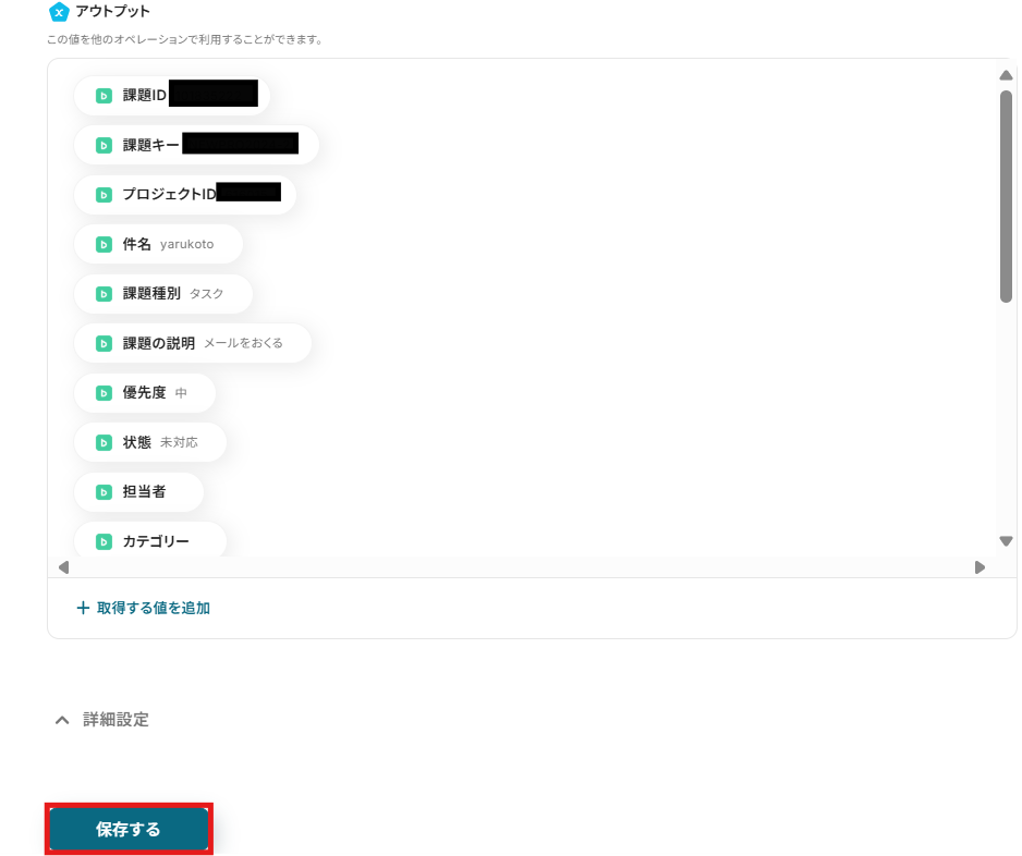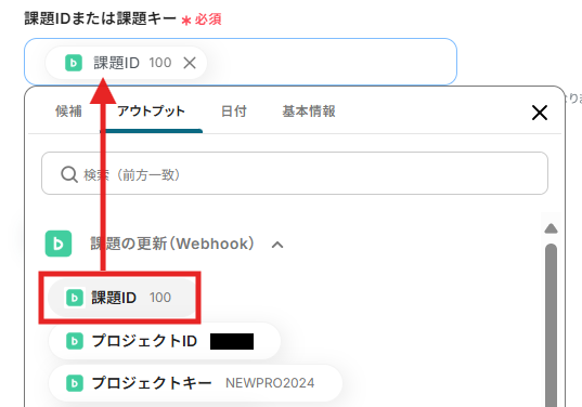 課題IDまたは課題キーの入力には先ほど取得したBacklogのアウトプットを選択できます。