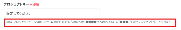 プロジェクトキーは作成したプロジェクトごとに異なるため、Backlogと連携させたいプロジェクトを指定しましょう。