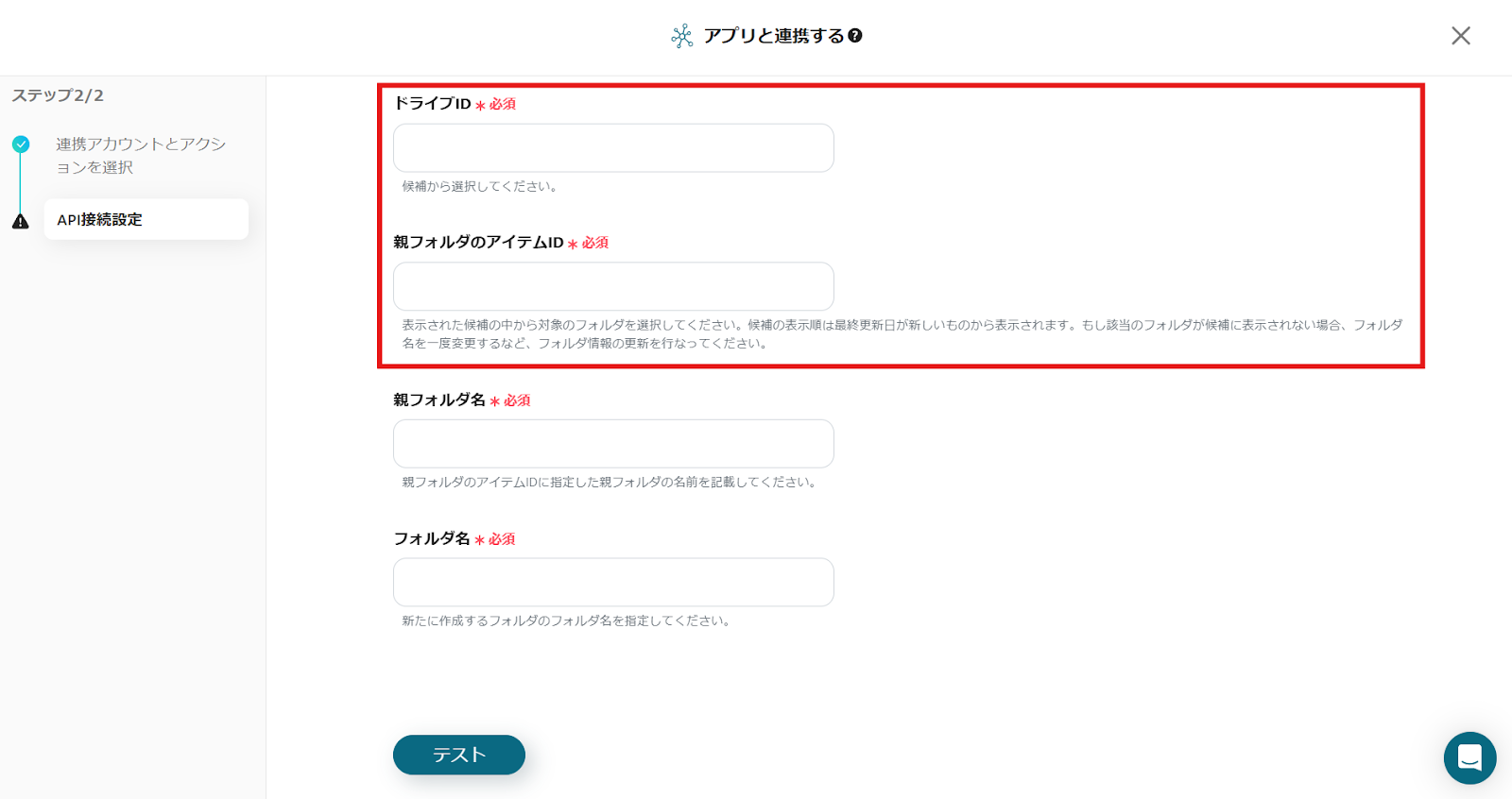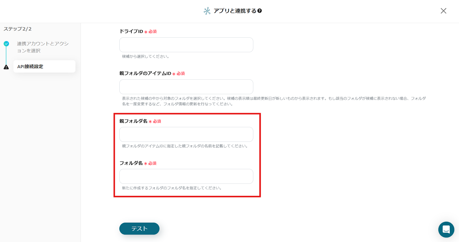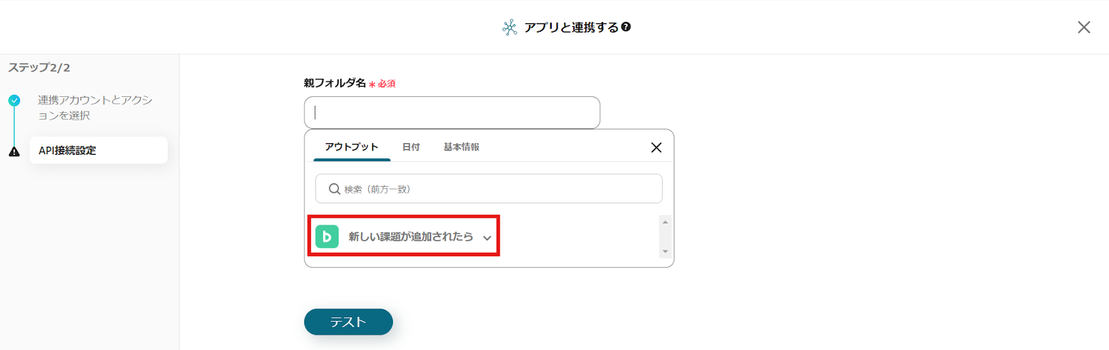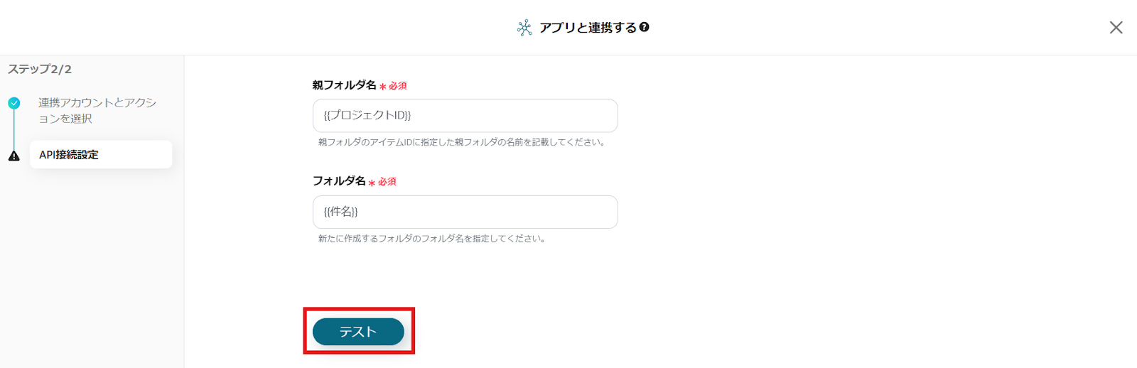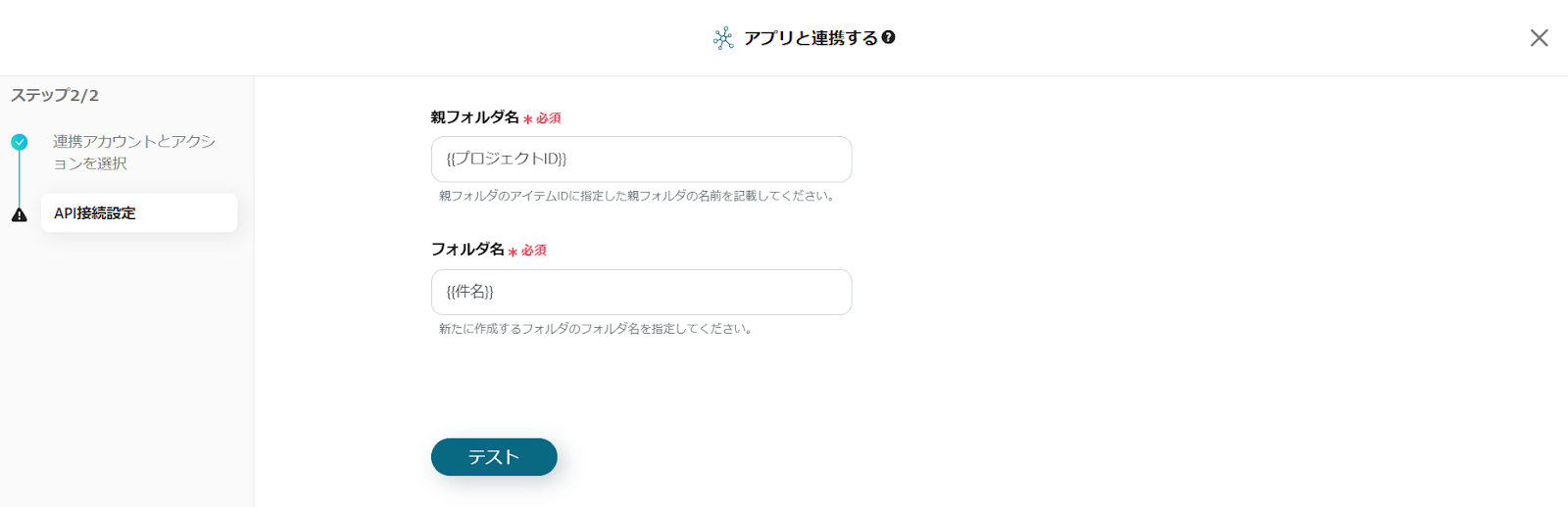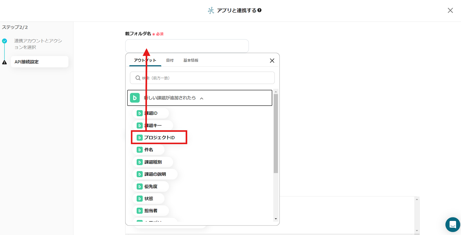 フォルダ名は「件名」を流用しました。これにより、プロジェクトIDが親フォルダ名になり、課題の件名がフォルダ名となります。