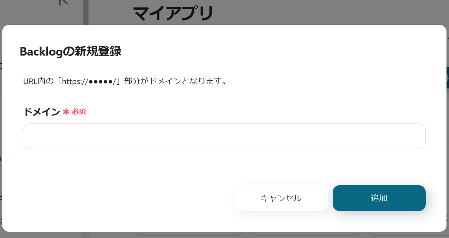 検索ボックスにBacklogとと入力し、Backlogのアイコンをクリックします。