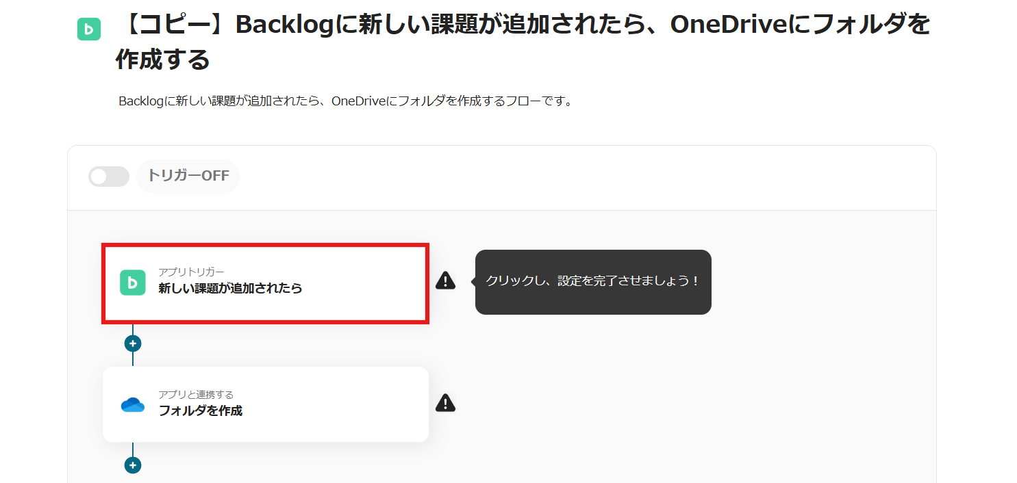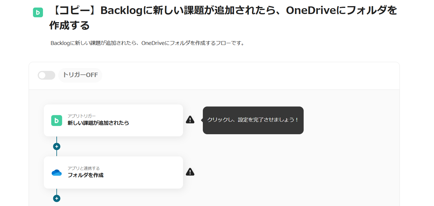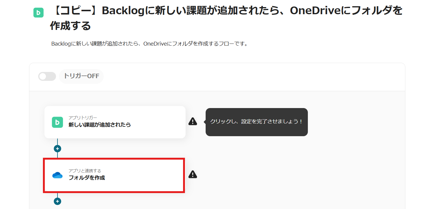 「【コピー】Backlogに新しい課題が追加されたら、OneDriveにフォルダを作成する」をクリックします。