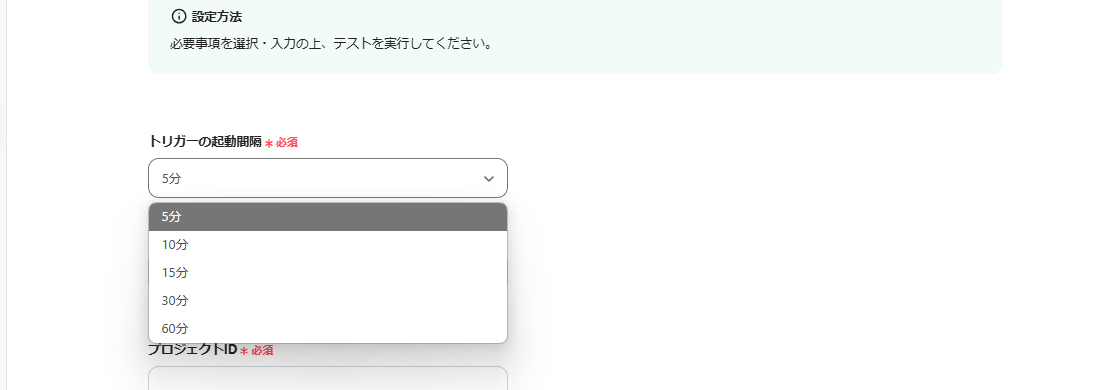 トリガーの起動間隔は、任意で設定できます。