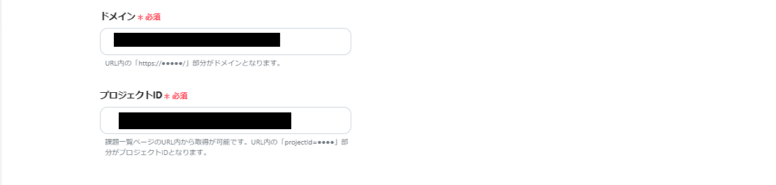 ドメインとプロジェクトIDは、注釈を参考に設定しましょう。