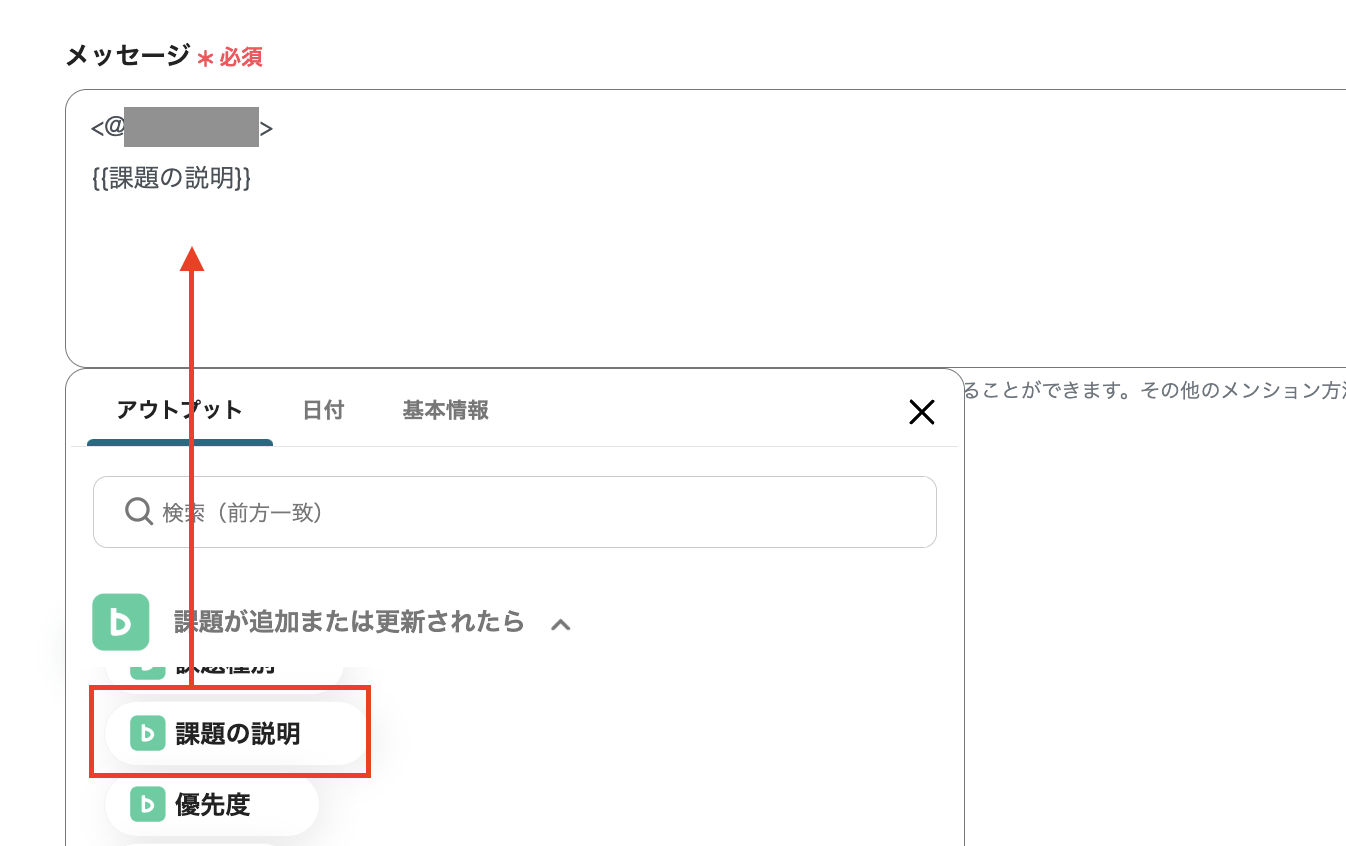 (4)チャンネルIDを指定した後、「メッセージ」に通知したい内容を入力していきます。