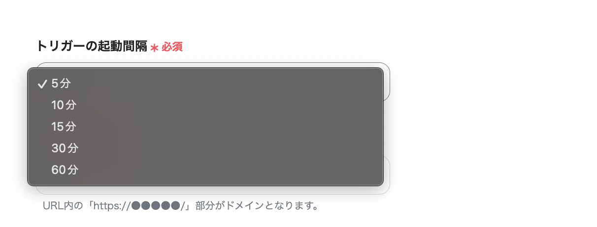 「トリガーの起動間隔」は5分、10分、15分、30分、60分から任意のものを選択してください。