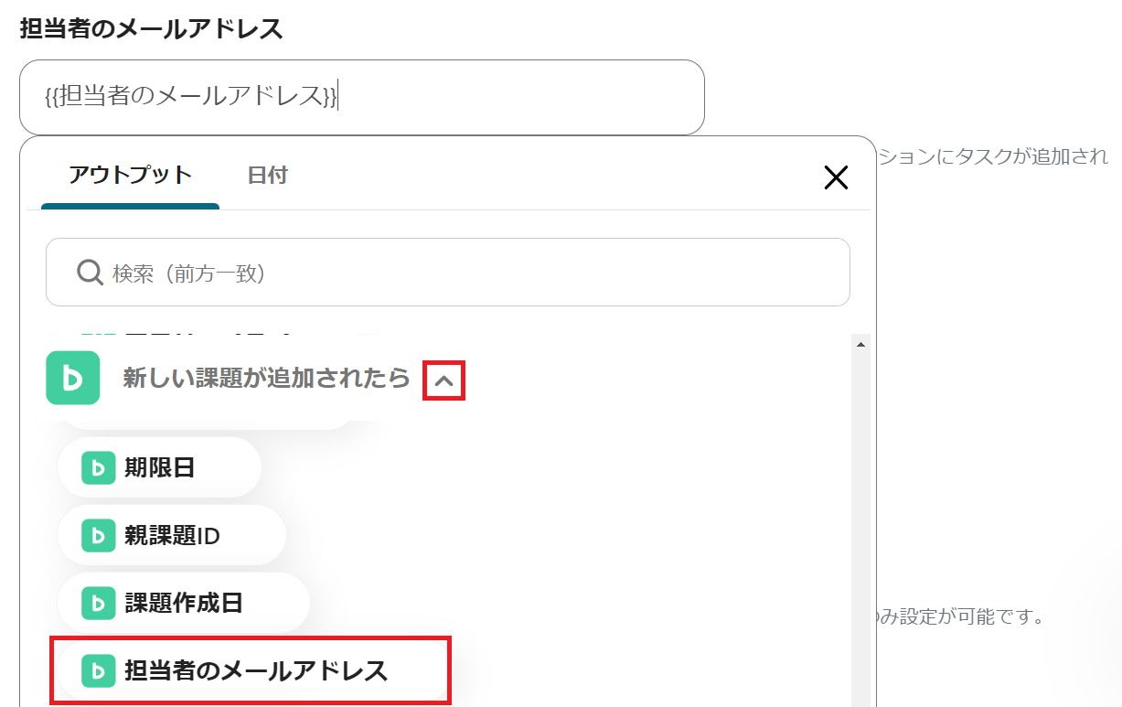 {{担当者のメールアドレス}}←アウトプットはこのように表示されます。