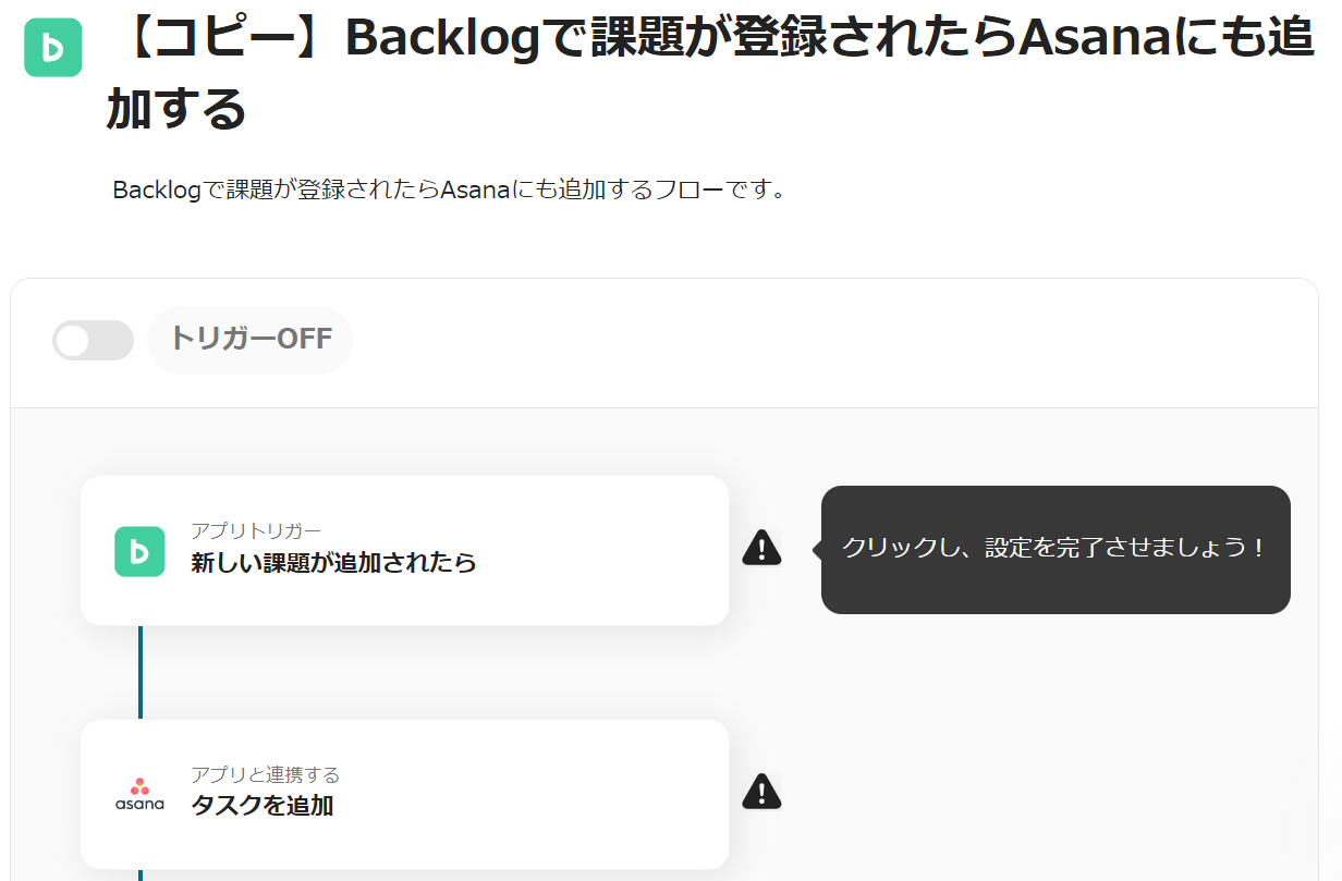 Asanaにタスクが追加されたらBacklogへ追加するフローです。