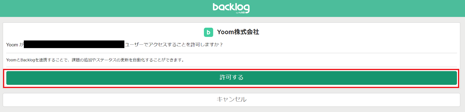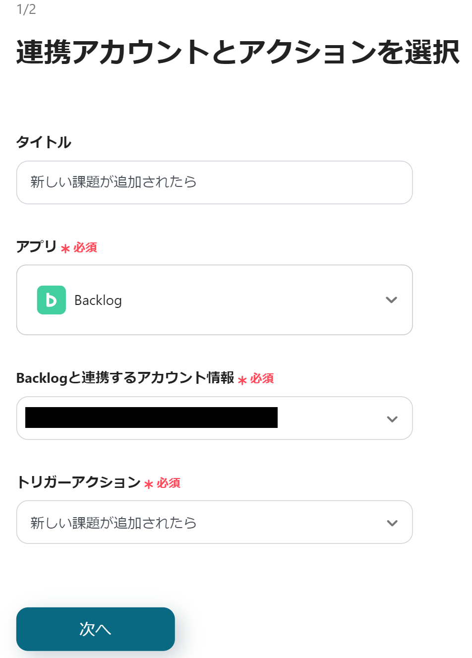 - 「Backlogと連携するアカウント情報」→正しいか確認