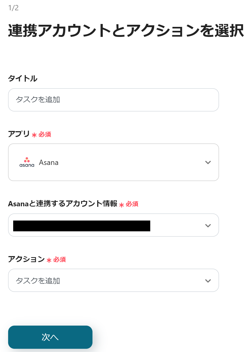 - 「Asanaと連携するアカウント情報」→正しいか確認