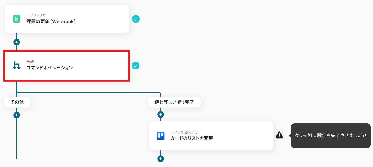 こちらがBacklogの課題が完了したらTrelloのカードを完了リストへ移動するフローでした。