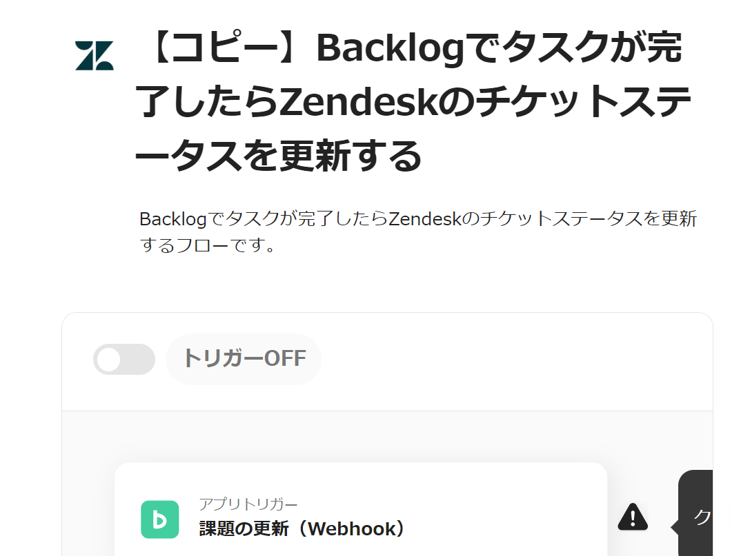 今回は、【Backlogでタスクが完了したらZendeskのチケットステータスを更新する】というフローを作成します。