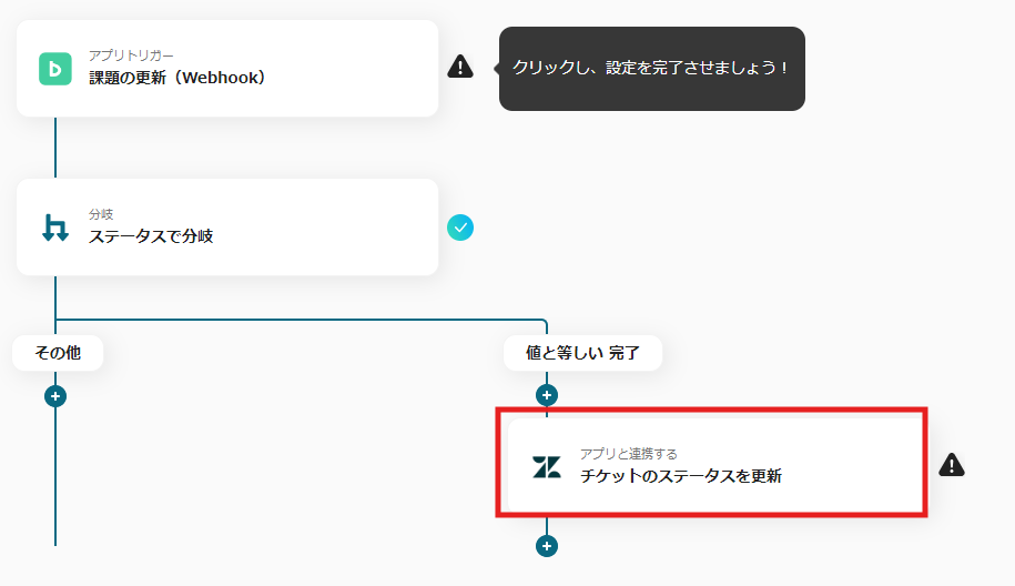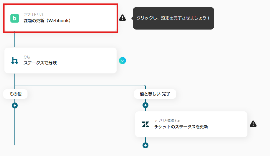 11) これで【Backlogでタスクが完了したらZendeskのチケットステータスを更新する】というフローの完成です。