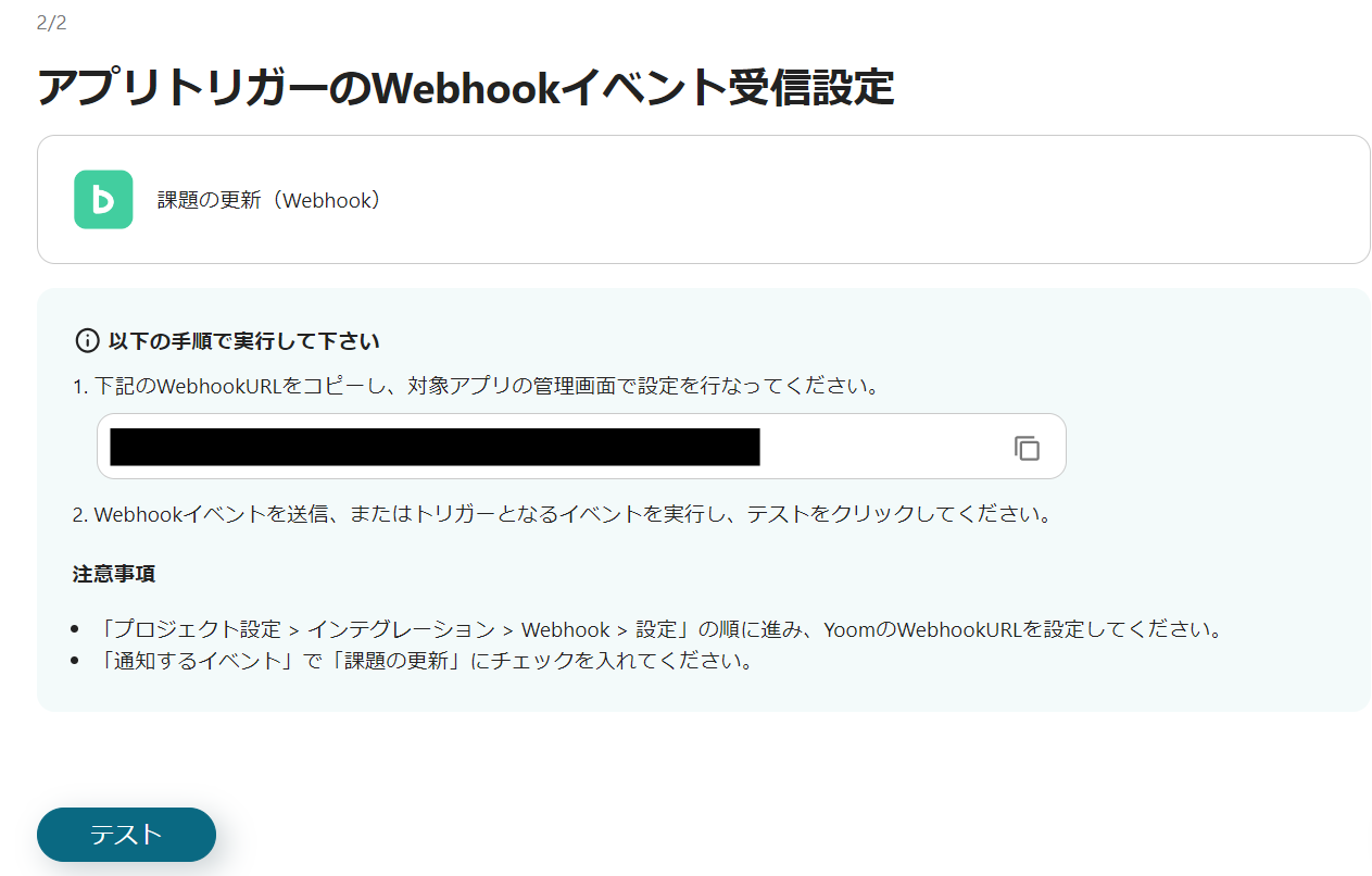 5) WebhookURLをコピーして、対象アプリの管理画面で設定してください。