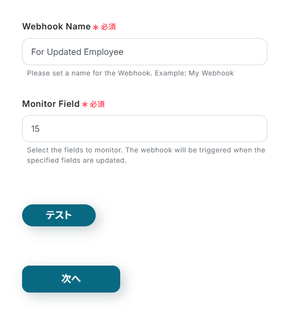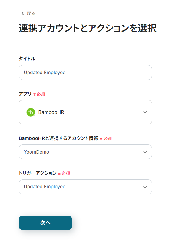 ステップ3:トリガーとなるBambooHRのWebhook設定