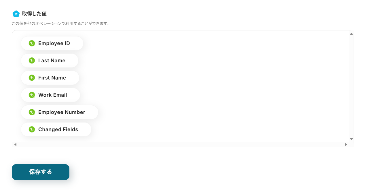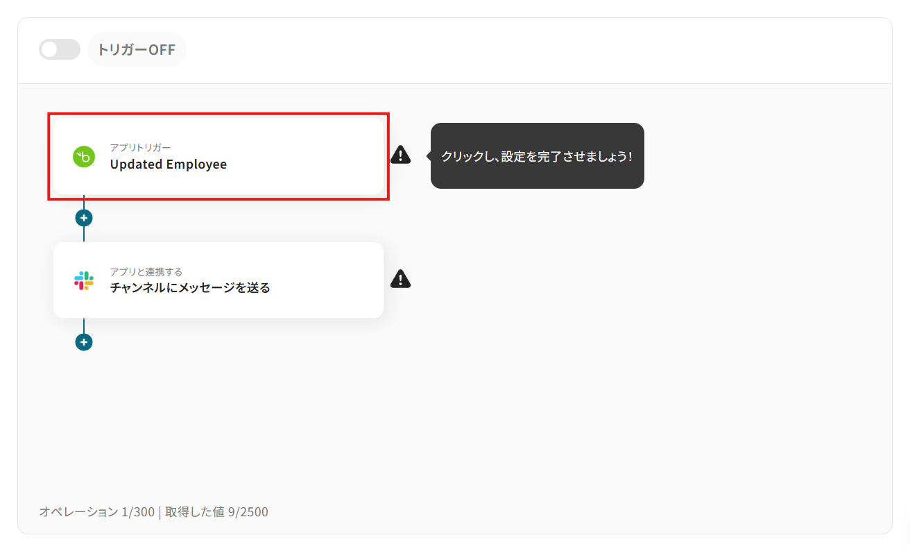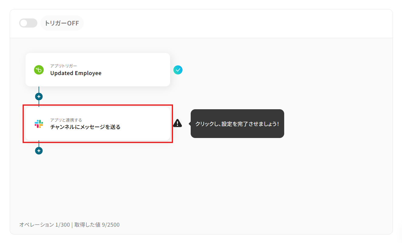 このワークフローを活用すれば、BambooHR APIと連携し、従業員情報の更新をきっかけにSlackへ自動で通知を送信できます。