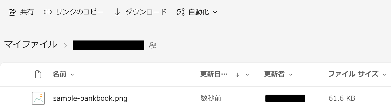 この記事では、サンプルとして以下の通帳(PNGファイル)をOneDriveにアップロードしています。