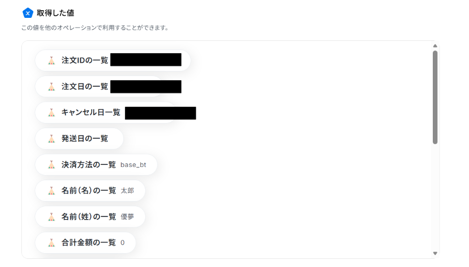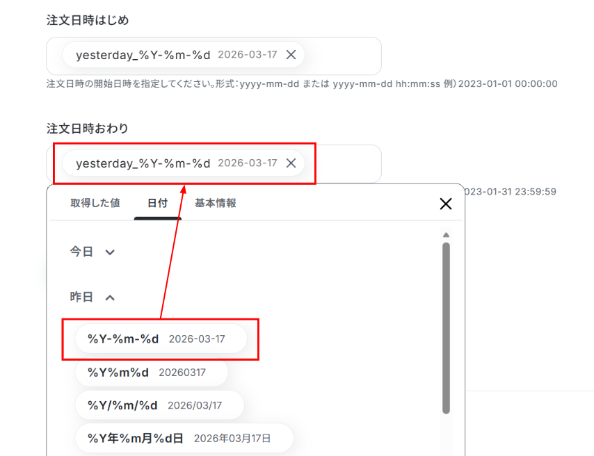 - BASEのオペレーションでは、取得対象としたい注文情報の期間(例えば「前日分のみ」など)を任意で設定することが可能です。