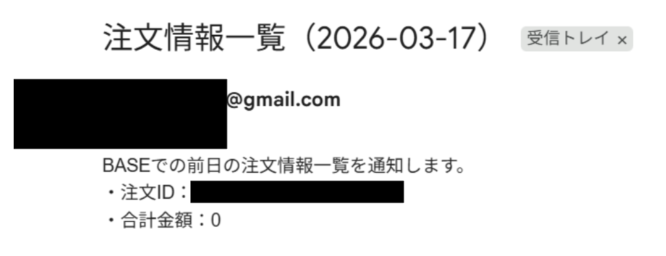 毎日、BASEで注文情報の一覧を取得し、Gmailでメールを送信する