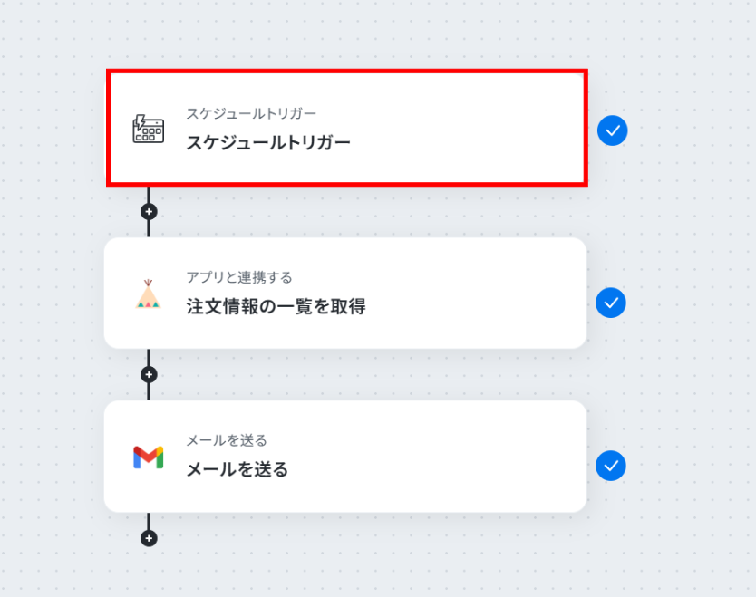 例えば、毎日決まった時間に注文情報を取得して、関係者にメールで通知するといった業務フローを自動化し、手作業による報告の手間や共有漏れをなくしましょう。