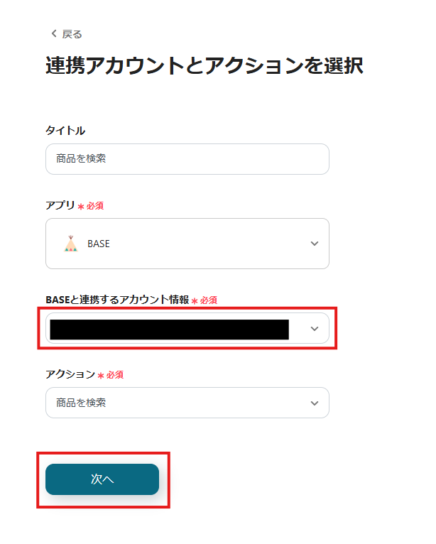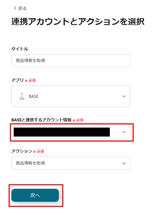 BASEと連携するアカウント情報に間違いないか確認し、「次へ」をクリックしてください