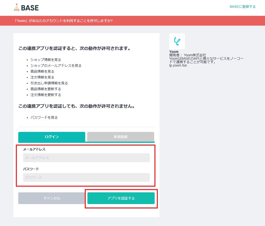 Yoomを利用していない方は、こちらから無料登録をしてください。