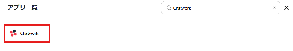 先ほどと同様に、検索窓にChatworkと入力し、表示された候補から「Chatwork」を選択します。