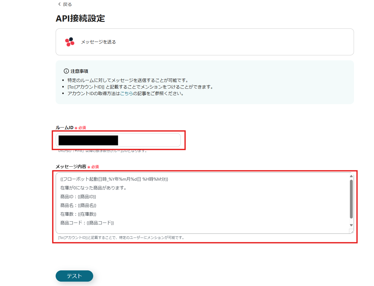 ルームIDの欄をクリックすると候補が出てきますので、その中から通知を送りたいルームを選んでください。