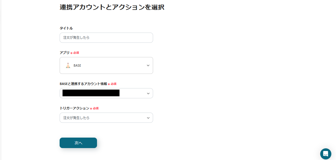 まずは、「BASEに注文がされたら」を押し、設定しましょう。