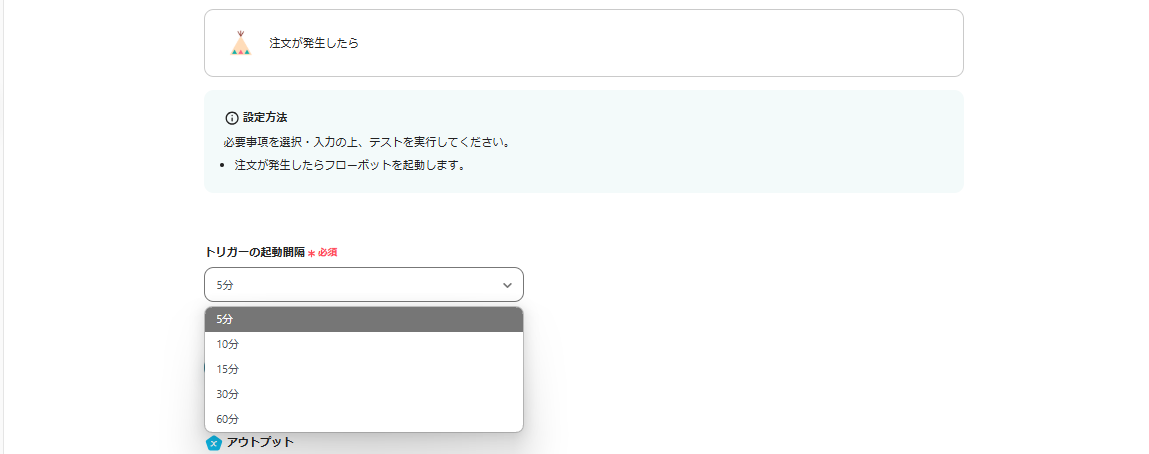 トリガーの起動間隔は、プルダウンより任意で設定可能です。