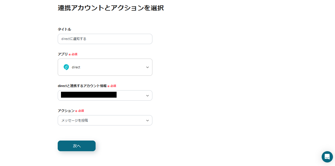 続いて、「directに通知する」をクリックし、アクションを設定してください。