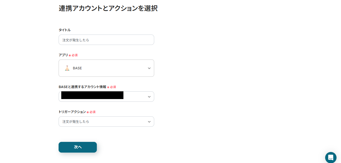 まずは、BASEに注文が発生したらフローボットが起動するようにするため、アプリトリガー設定を行います。