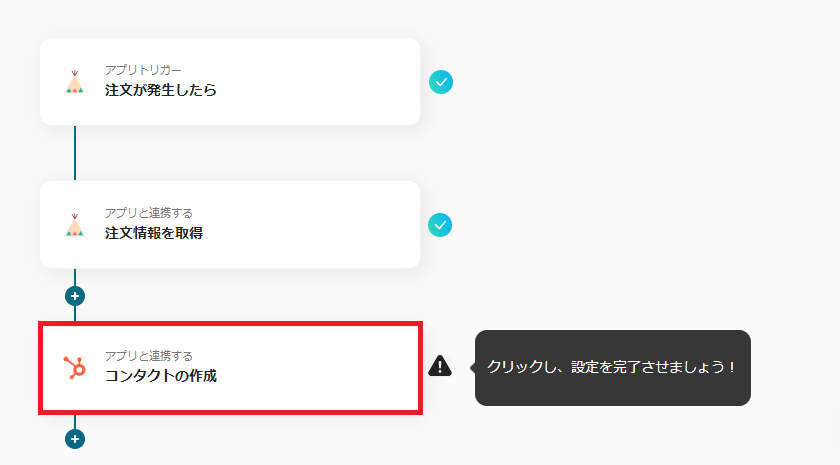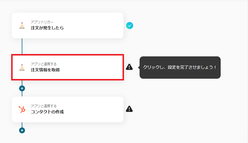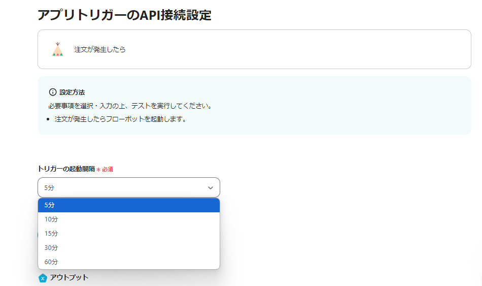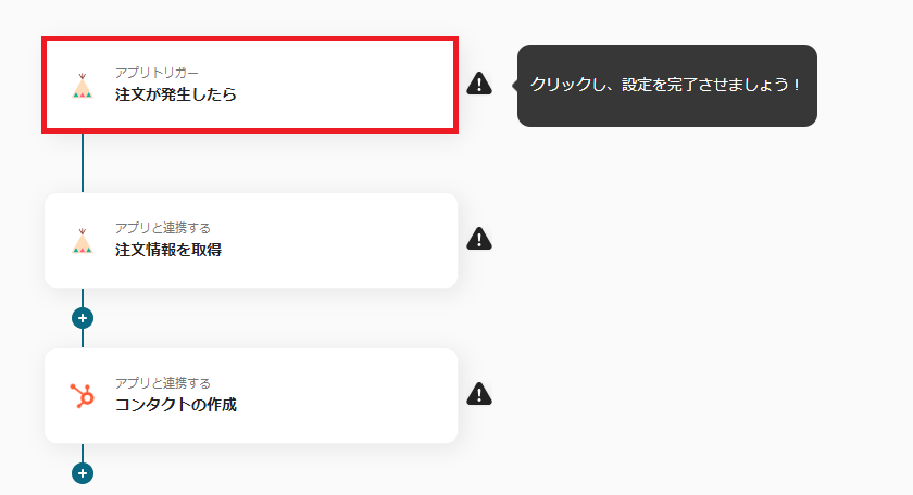 アプリトリガーの「注文が発生したら」という項目を設定します。