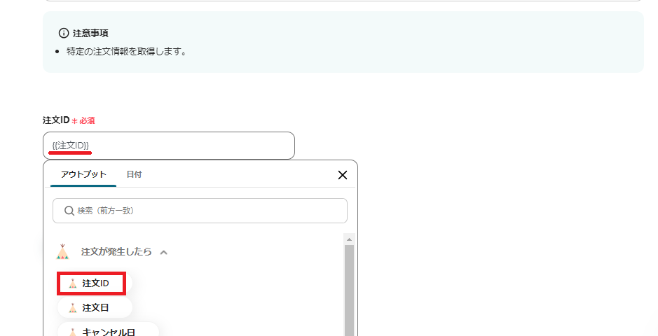 ※補足)上記画像のように設定すると、BASEで注文が発生したら「注文ID」を自動で取得することができます。