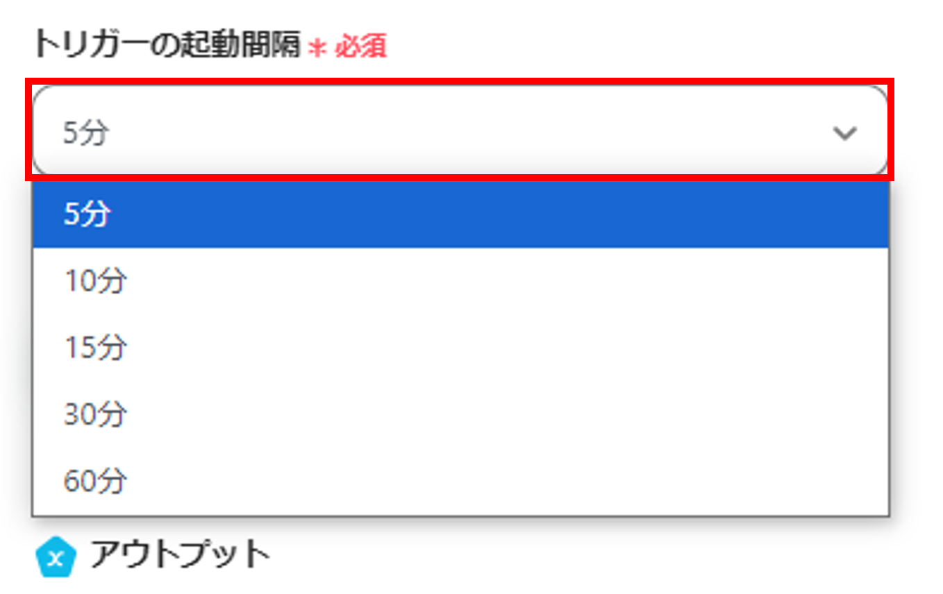 (3)アプリトリガーのAPI接続設定画面で、トリガーの起動間隔を設定します。