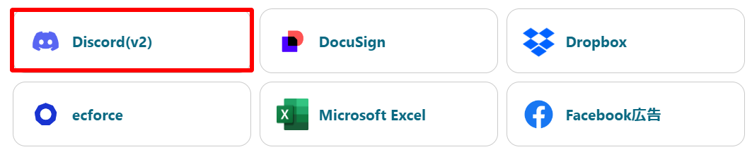 Discordのマイアプリ連携には、Discord(v2)を使用してください。アクセストークンを入力する必要があるので、以下のリンクを確認しながら進めましょう。