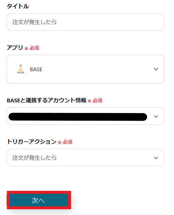 2.BASEで注文が発生したら起動するトリガーの設定