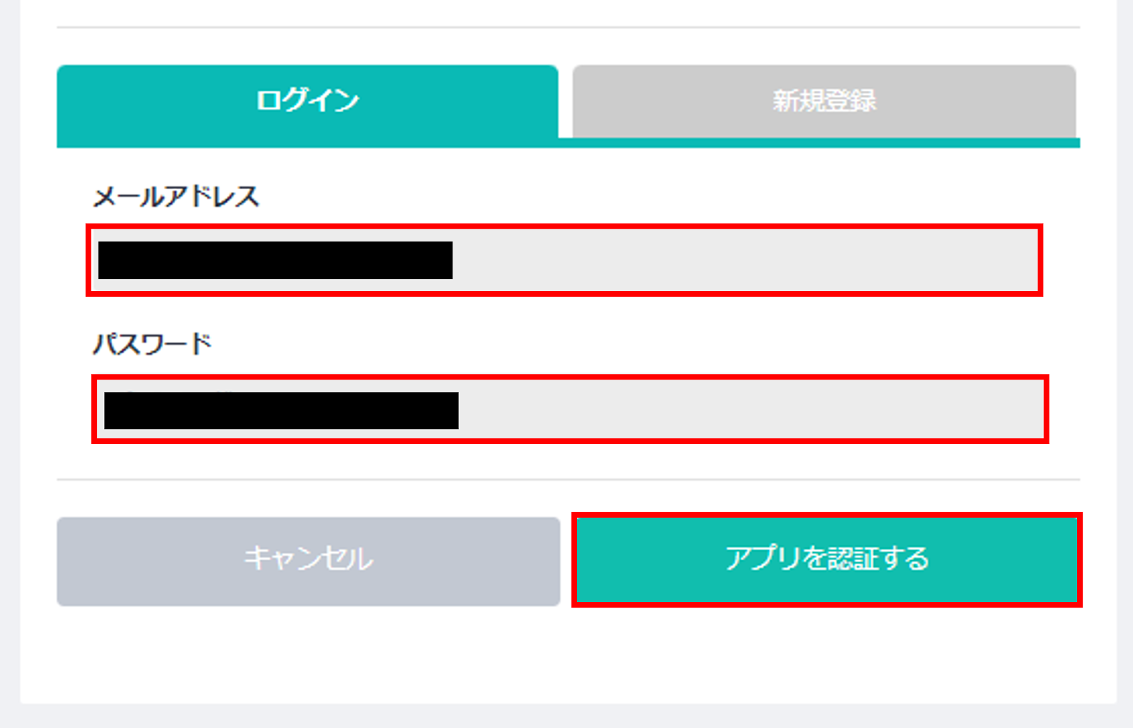 上記画面が表示されるので、連携するアカウントのメールアドレスとパスワードを入力後、「アプリを認証する」をクリックしてください。