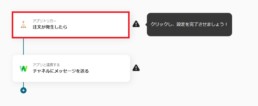 トリガーアクションは、「注文が発生したら」が選択されていることを確認し、「次へ」をクリックしてください。