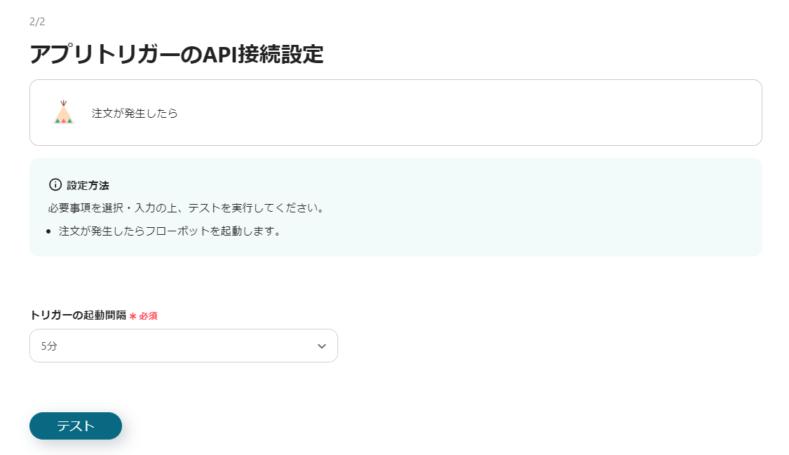 次のページでは「何分おきに注文発生の確認をするか」という設定を行います。
