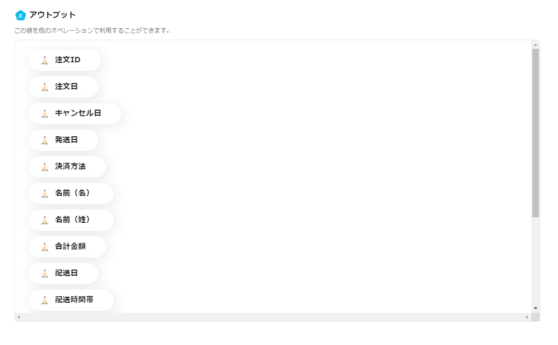 BASEの設定で取得したアウトプットから必要な情報を選択しましょう。