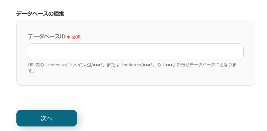 下に進むとNotionのデータベースIDを入力する欄が出てきます。