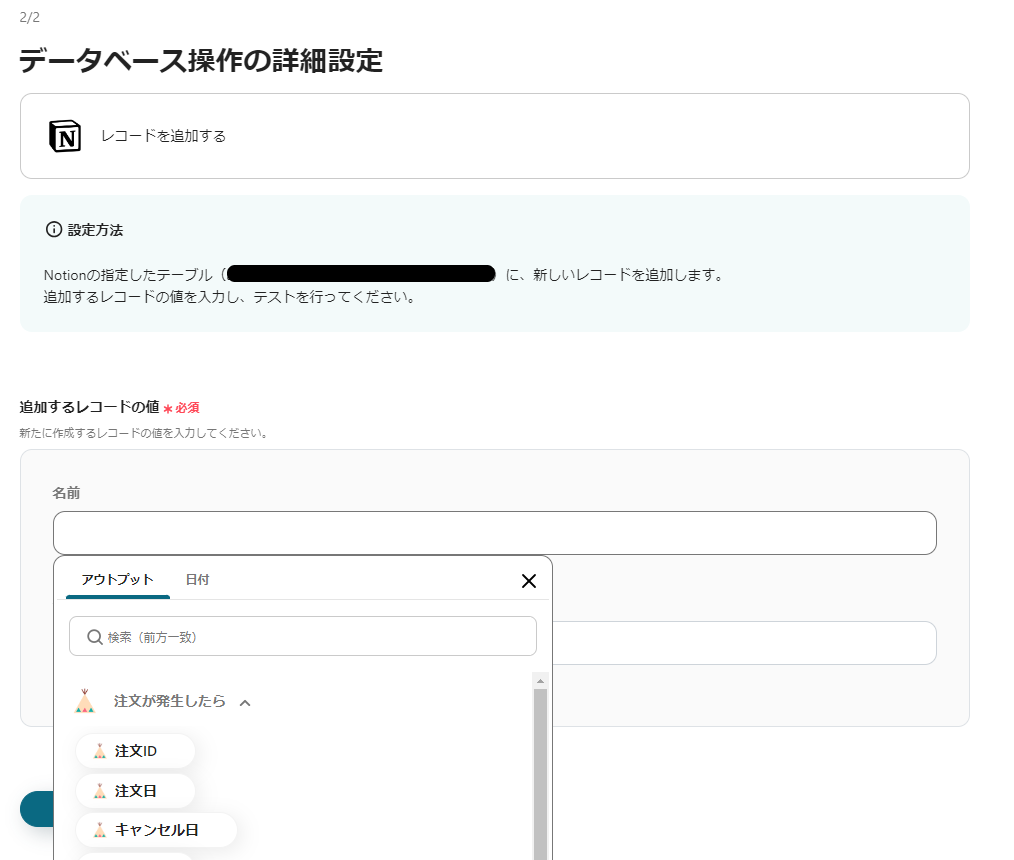 問題がなければ、次のページでは追加するレコードの詳細を設定しましょう。